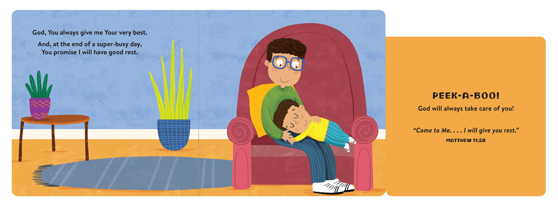 This delightful, interactive lift-a-flap board book, perfect for toddlers and preschoolers, is a fantastic way to introduce little hearts to the amazing love and care of the Savior. Every spread features simple prayers alongside colorful illustrations, related peek-a-boo rhymes, and easy-to-understand scripture verses from the New Life Version. Each prayer begins with a simple greeting to the heavenly Father and then, when your little readers lift the flap, they'll discover an encouraging, biblically rooted truth and related scripture selection. Bedtime Peek-a-Boo Prayers is a wonderful building block to help kids grow in their faith!