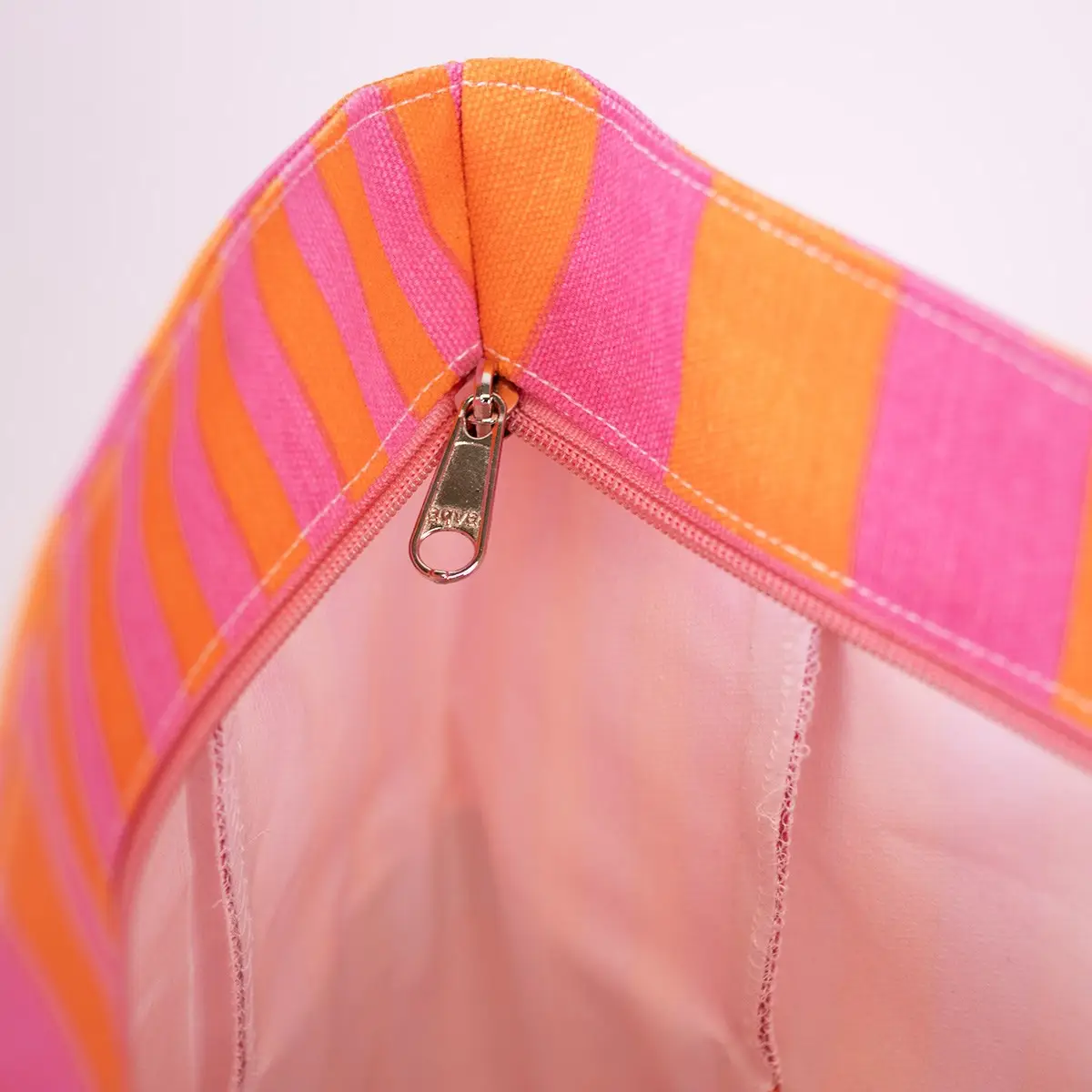 Introducing the Caroline Durham Tote in a vibrant Pink/Orange color combination. Measuring 18x13.5x6 inches, this spacious tote is the perfect accessory for carrying your essentials with style and functionality.