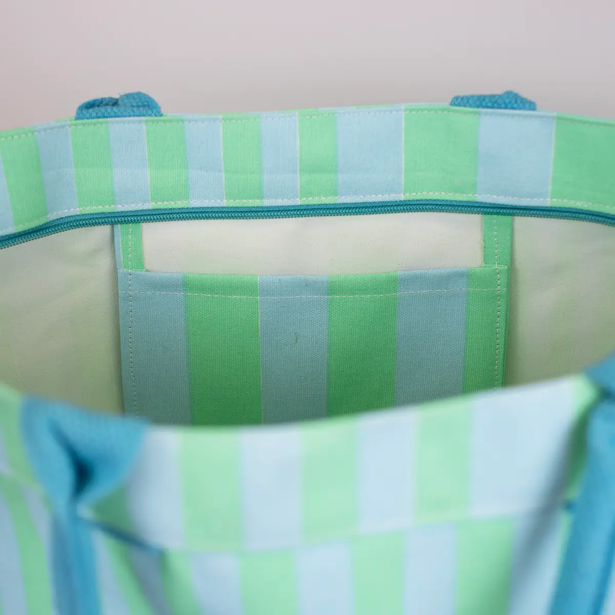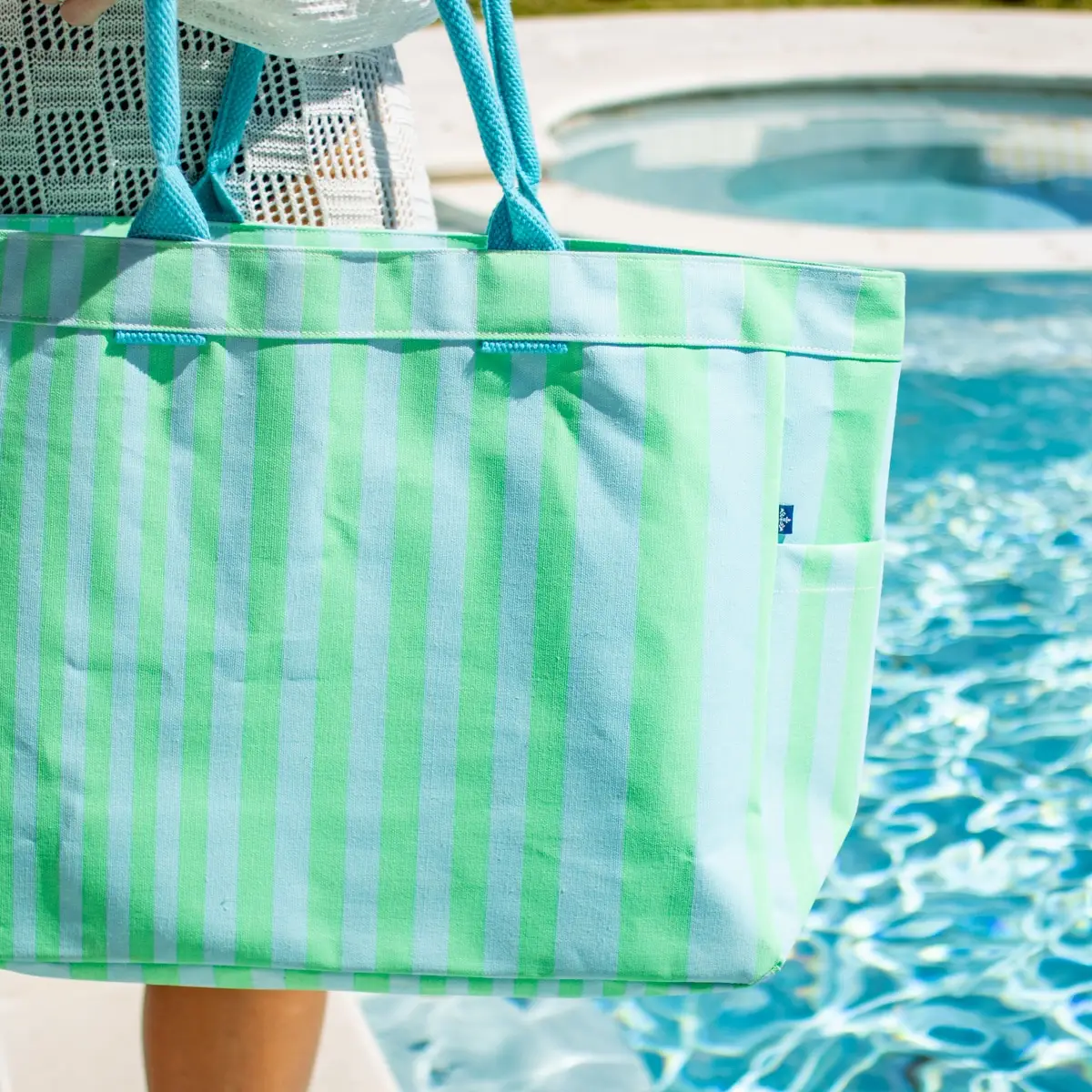 The Caroline Durham Tote in Turquoise/Mint is a stylish and practical accessory with its spacious 18x13.5x6 dimensions. Made with high-quality materials, this tote offers ample storage space and a vibrant color combination that will surely catch the eye.