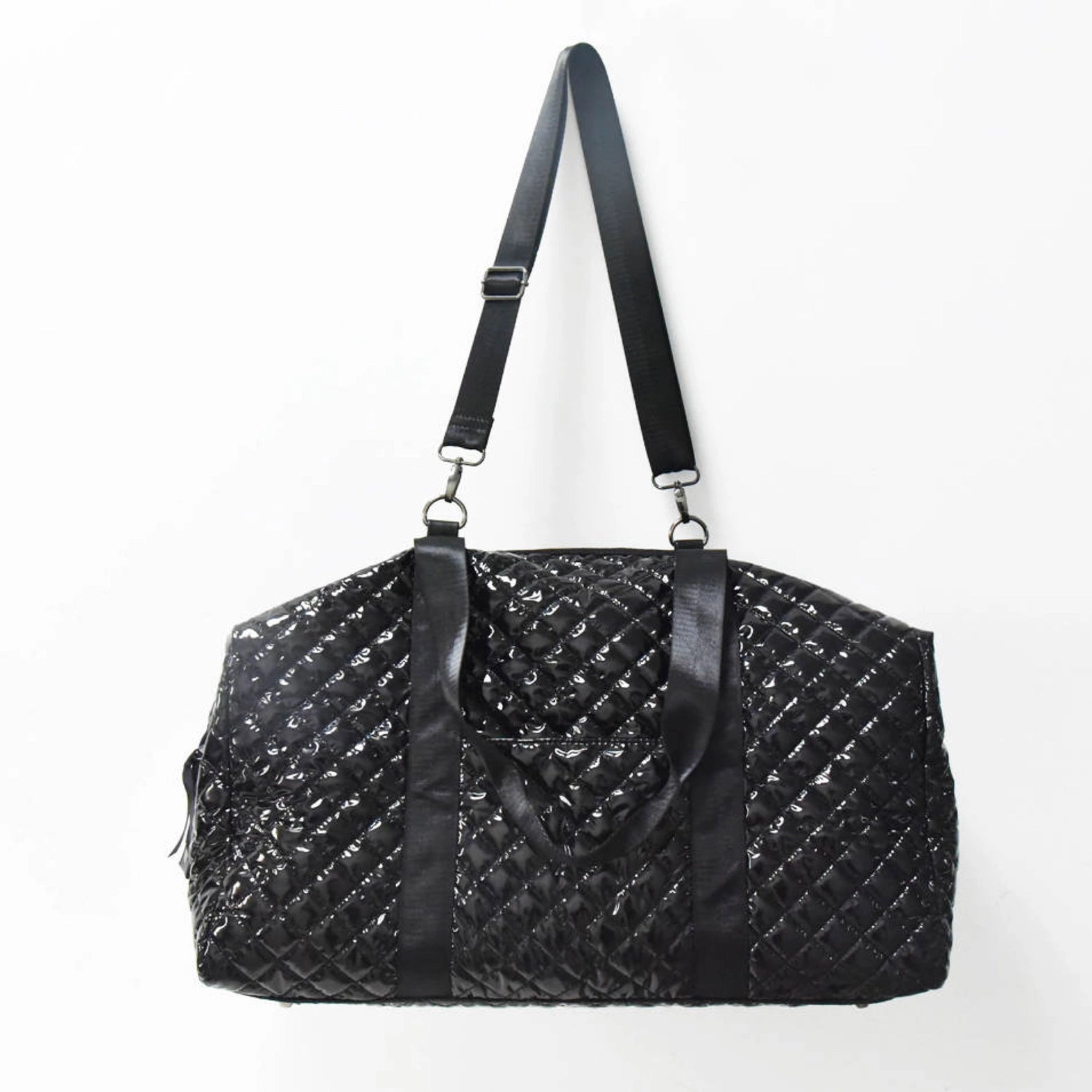 Our newest addition, the diamond puffer collection is on trend with its patent lacquer finish in four beautiful color. The traditional Black Patent, the Gunmetal Patent, the Gold Metallic Patent and the Almond Patent. Great for everyday or on the go! Comes with detachable striped strap for easy carrying over the shoulder or crossbody.Dimensions:28L x 14.5L x 9D Detachable striped Strap: 52”please visit lemon-Bella.com for more information