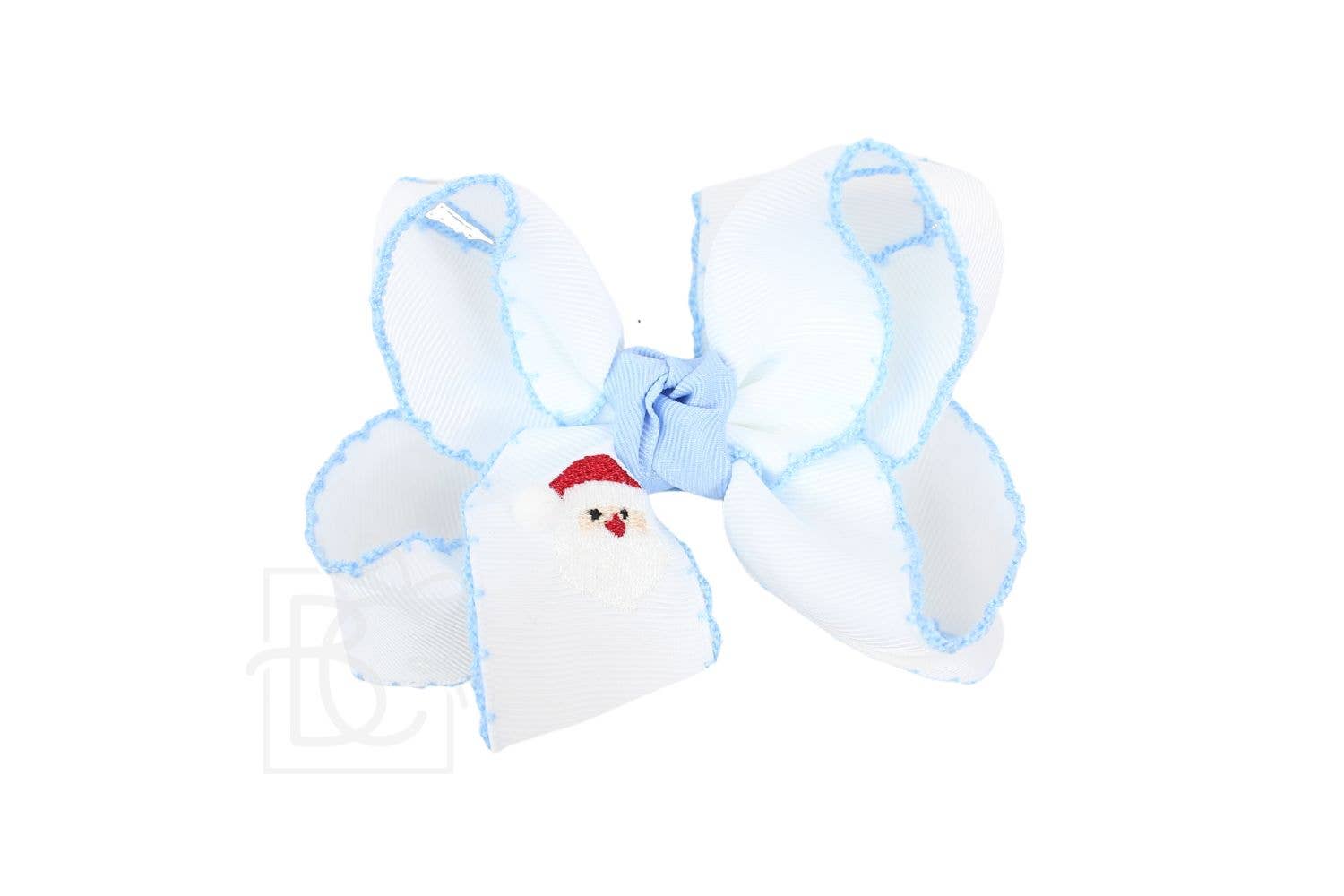 4.5" Embroidered Santa Crochet Edge Hair Bow: White w/ Millennium Blue Edge