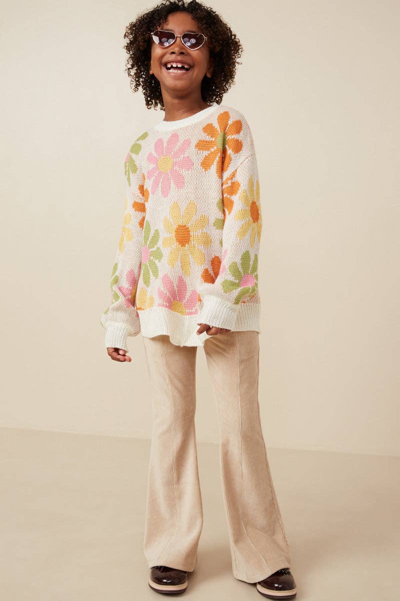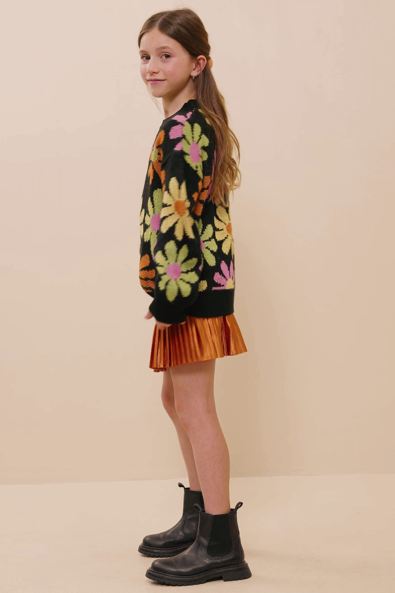 Girls Retro Daisy Knit Sweater