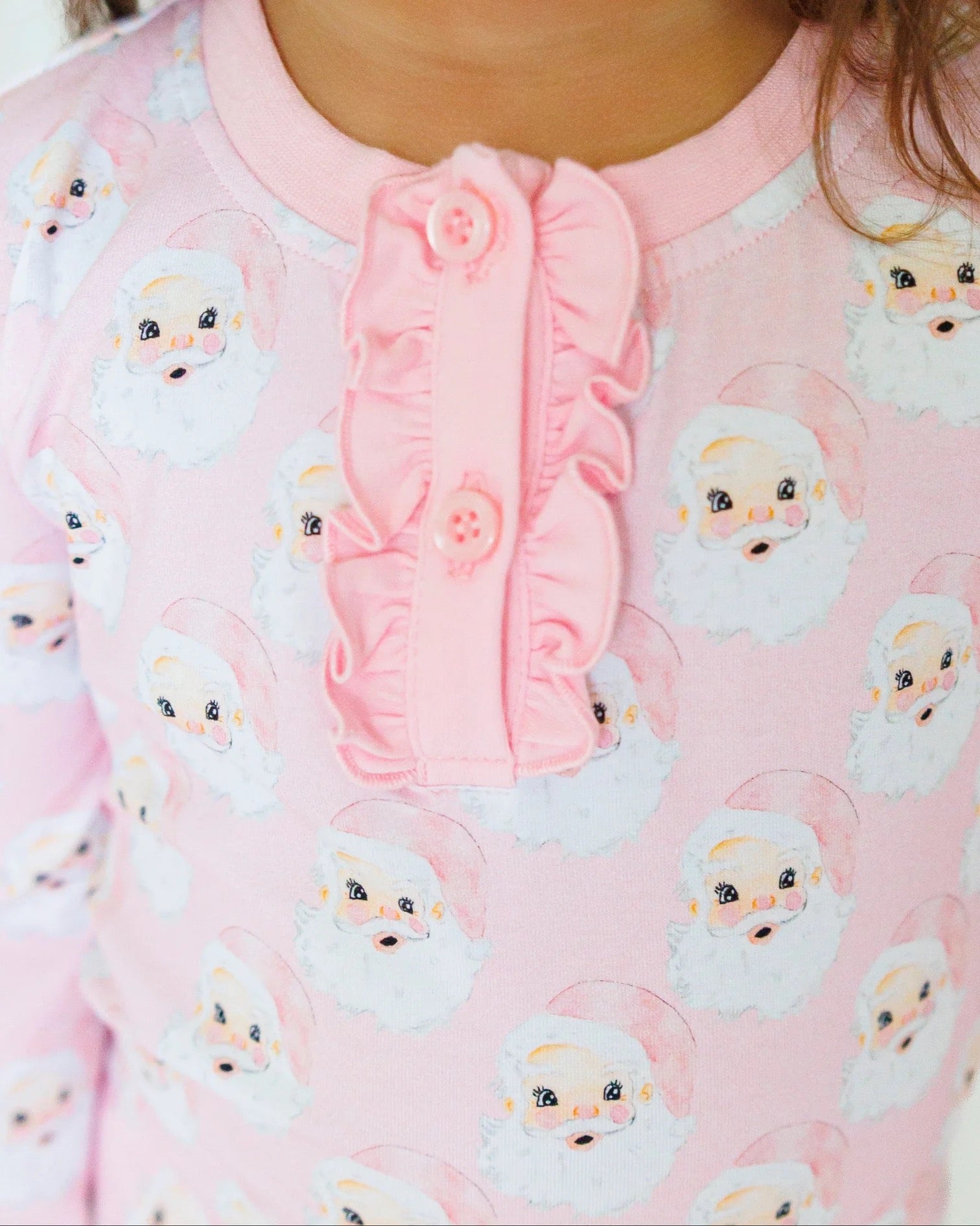 Get ready for festive fun with the Pink Jolly Santa Ruffle Set! This cozy pants set features a cheerful pink print adorned with jolly Santas, perfect for spreading holiday cheer. Soft and comfortable, it’s ideal for lounging by the fire or wrapping up gifts in style. Celebrate the season with playful comfort that keeps you smiling all day long.