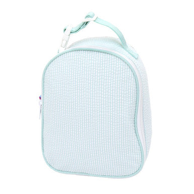 This is the new lunchbox--The Gumdrop! It's lined inside with our new and improved fabric...it has a little net to hold utensils and a napkin inside along the inside wall. The front pocket zips almost all the way open for easy personalization for my customers who personalize with stitches. This new bag doubles as a great bag for baby--it can carry a bottle and baby food and keep it all chilly! Top strap has a ladder lock buckle to make it easy to clip on to bags and strollers. You'll love our new lunch tote! Match it with our book bags and nap rolls and you're all set for Mother's Day Out. :)