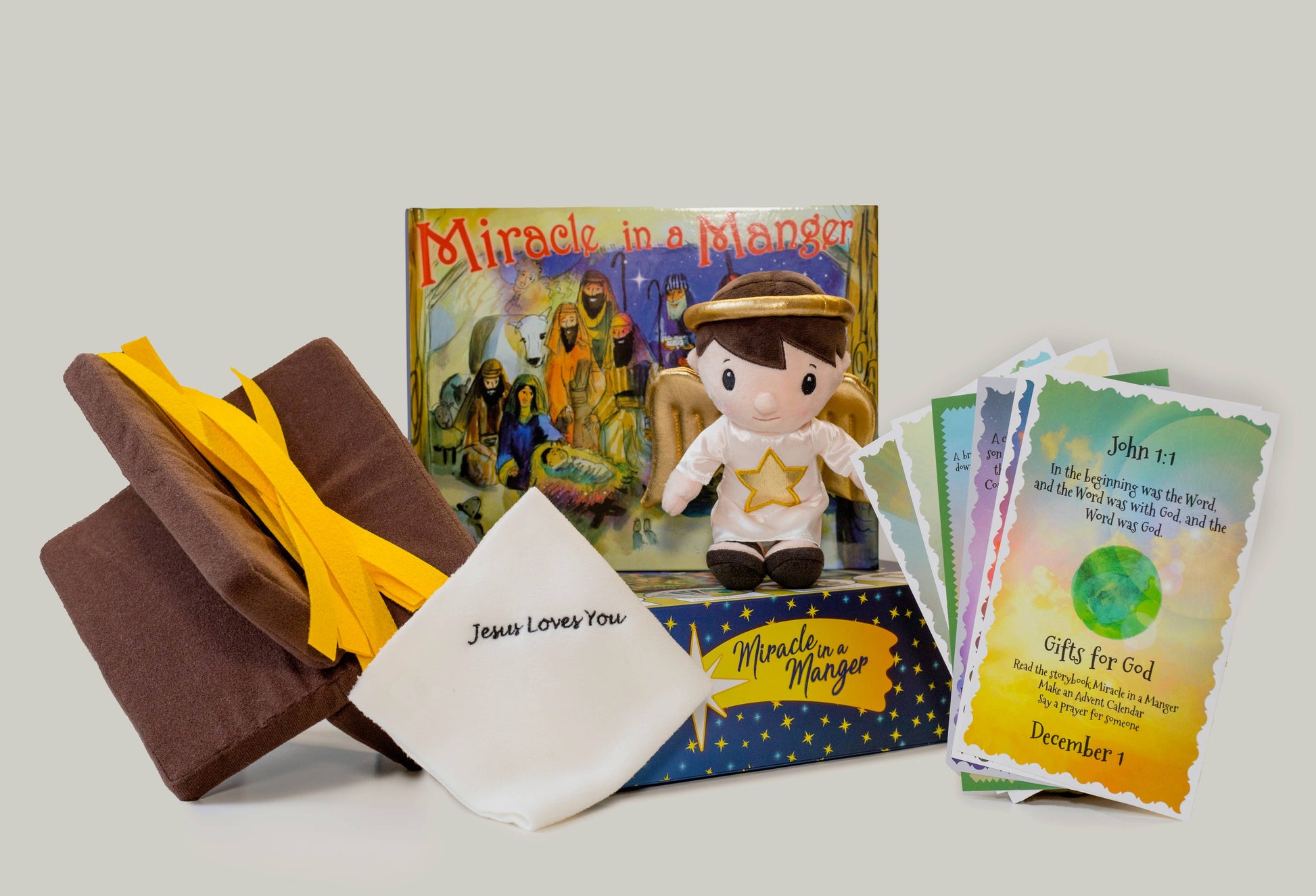 Miracle in a Manger is a fun & interactive Christian alternative to the popular Christmas Elf Tradition. This daily advent activity teaches your family the TRUE meaning of Christmas. It includes an illustrated storybook, twenty-five angel message cards, twenty-five pieces of soft hay, a plush manger, & an angel who transforms to become the baby Jesus on Christmas morning. Miracle in a Manger uniquely teaches the Christmas story in a way that’s simple, effortless for parents, & fun for children!