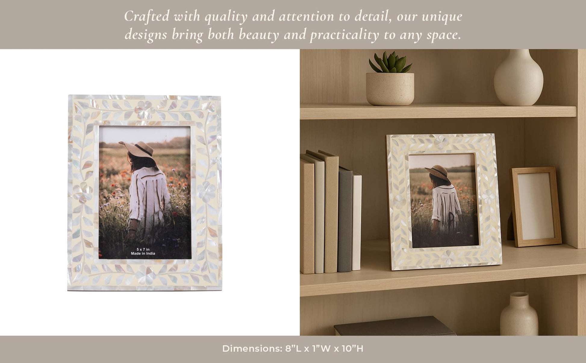 • Handcrafted Inlay Art - Each floral motif is artisan set over a sturdy wood base, creating heirloom-quality frames that elevate office desks and shelves while keeping treasured photos crisp behind protective glass.