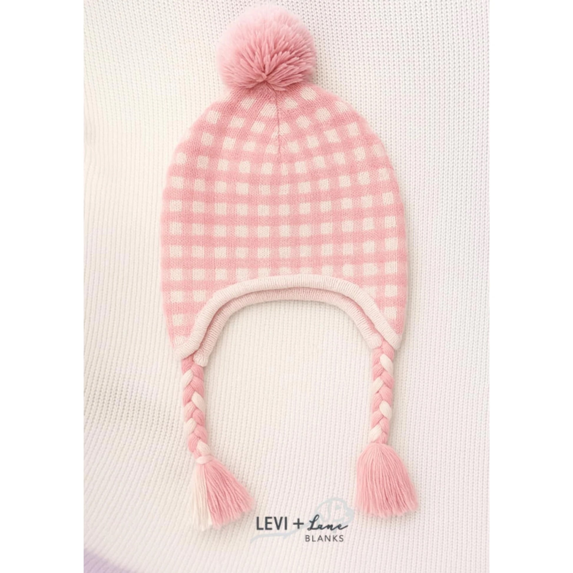 Pink Gingham Ear Flap Knit Hat