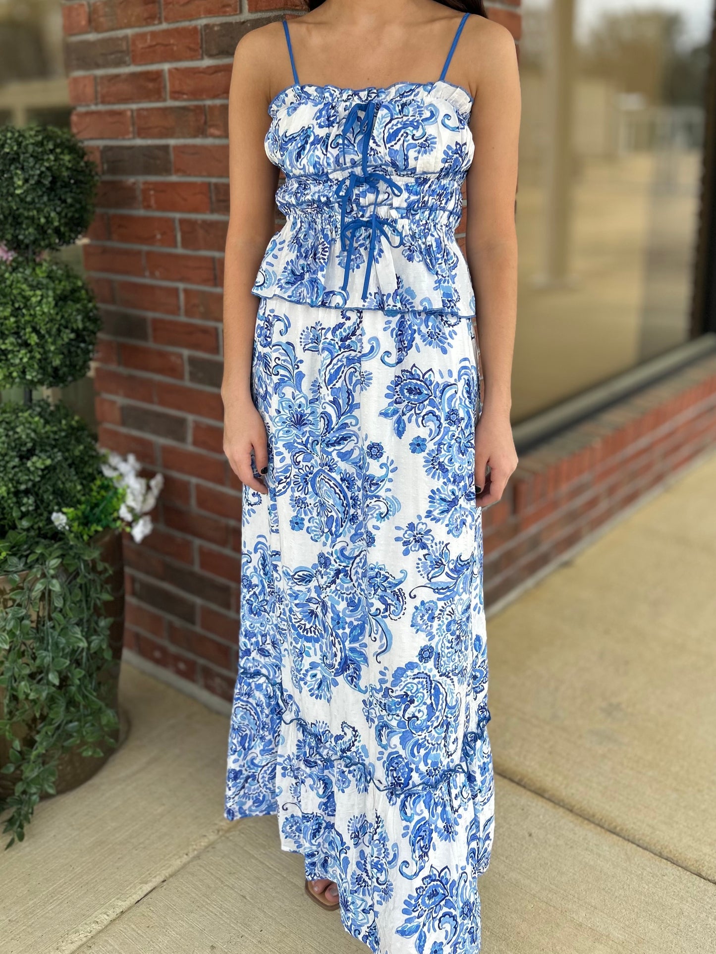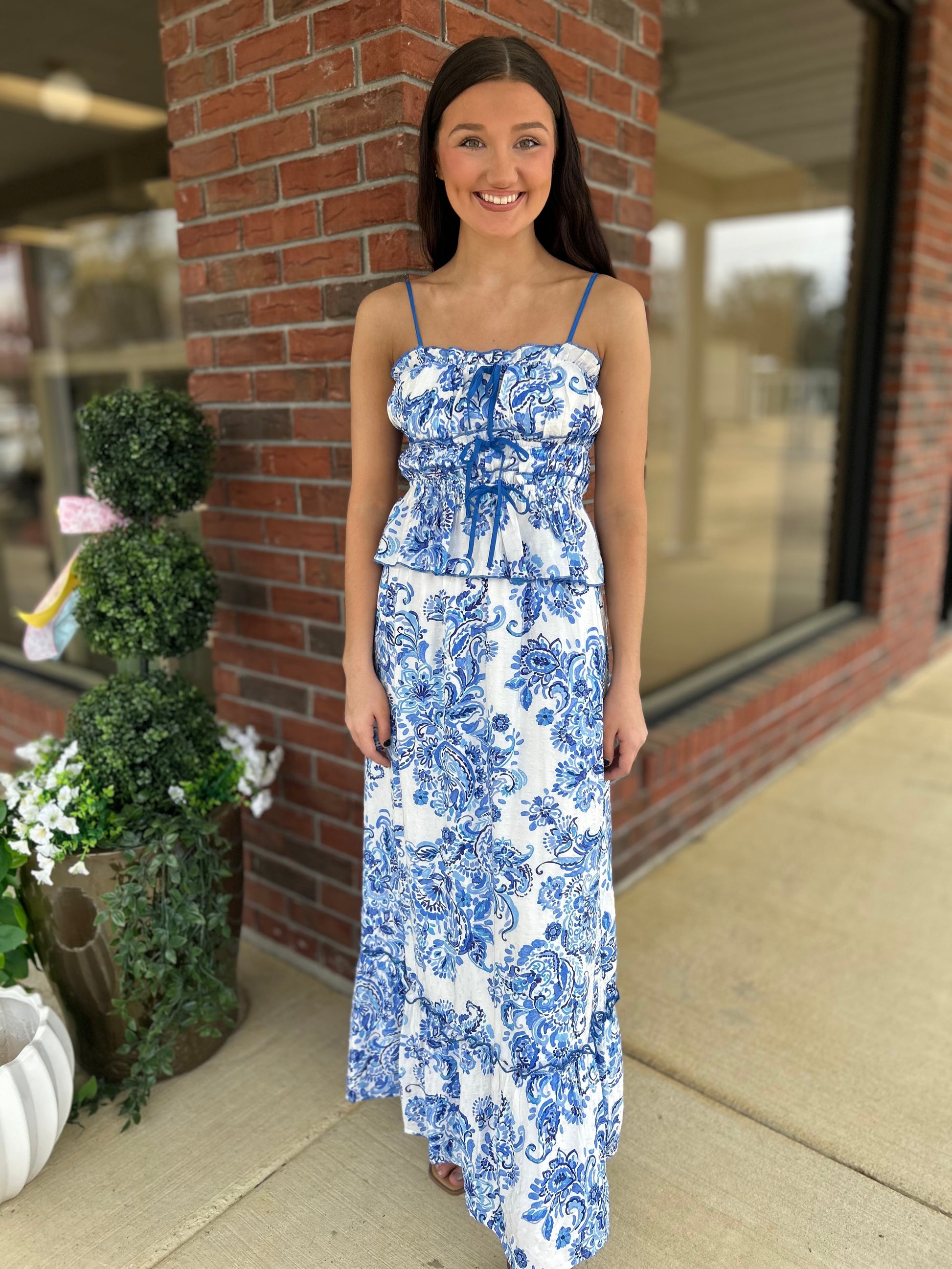 Print Ruffle Detail Cropped Top