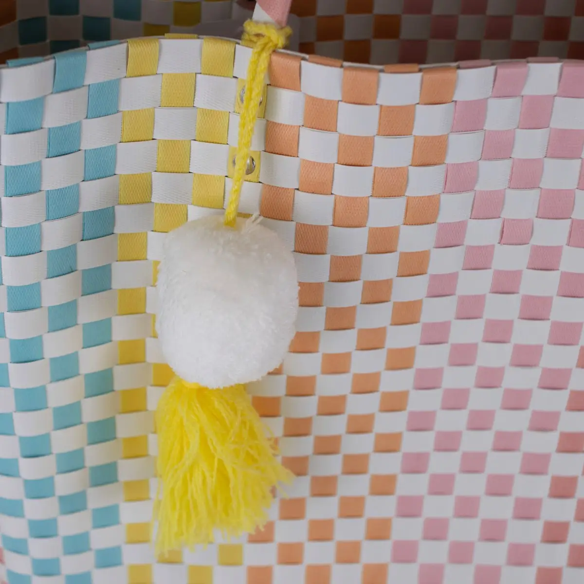 The Sabrina Woven Tote in Multi/White is a stylish and versatile accessory that measures 17x14x5 inches. With its intricate woven design and spacious interior, this tote is perfect for carrying all your essentials while adding a touch of elegance to any outfit.