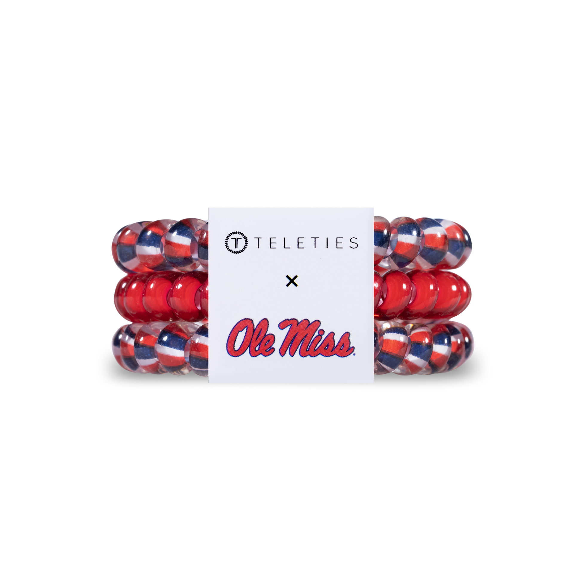 Hold your hair and enhance your collegiate style with University of Mississippi TELETIES. The strong grip, no rip hair tie that doubles as a bracelet. Strong, pretty and stylish, TELETIES are designed to withstand everyday demands while taking your look to the next level.