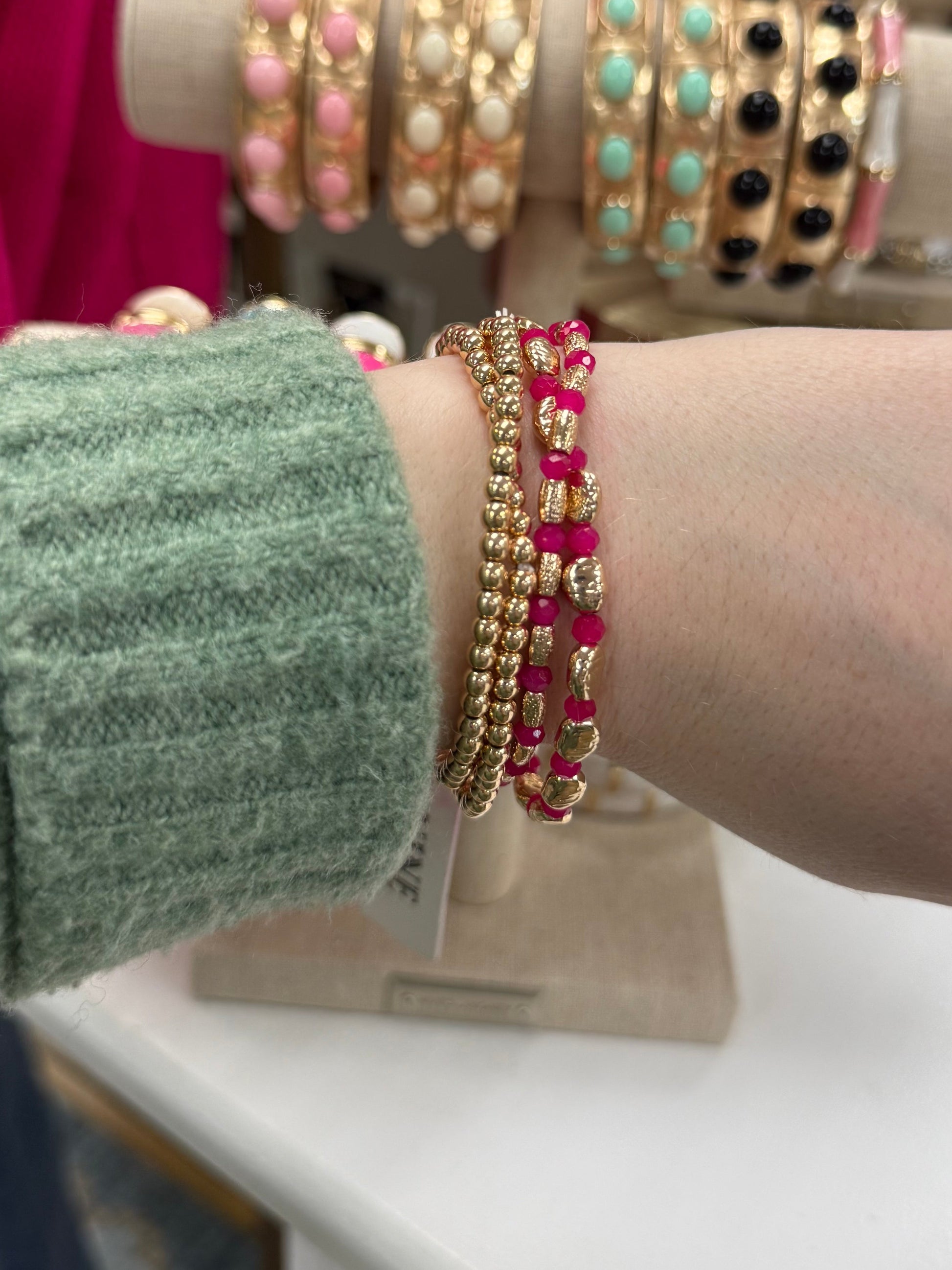Stella Beaded Stretch Bracelets - Hot Pink/Gold