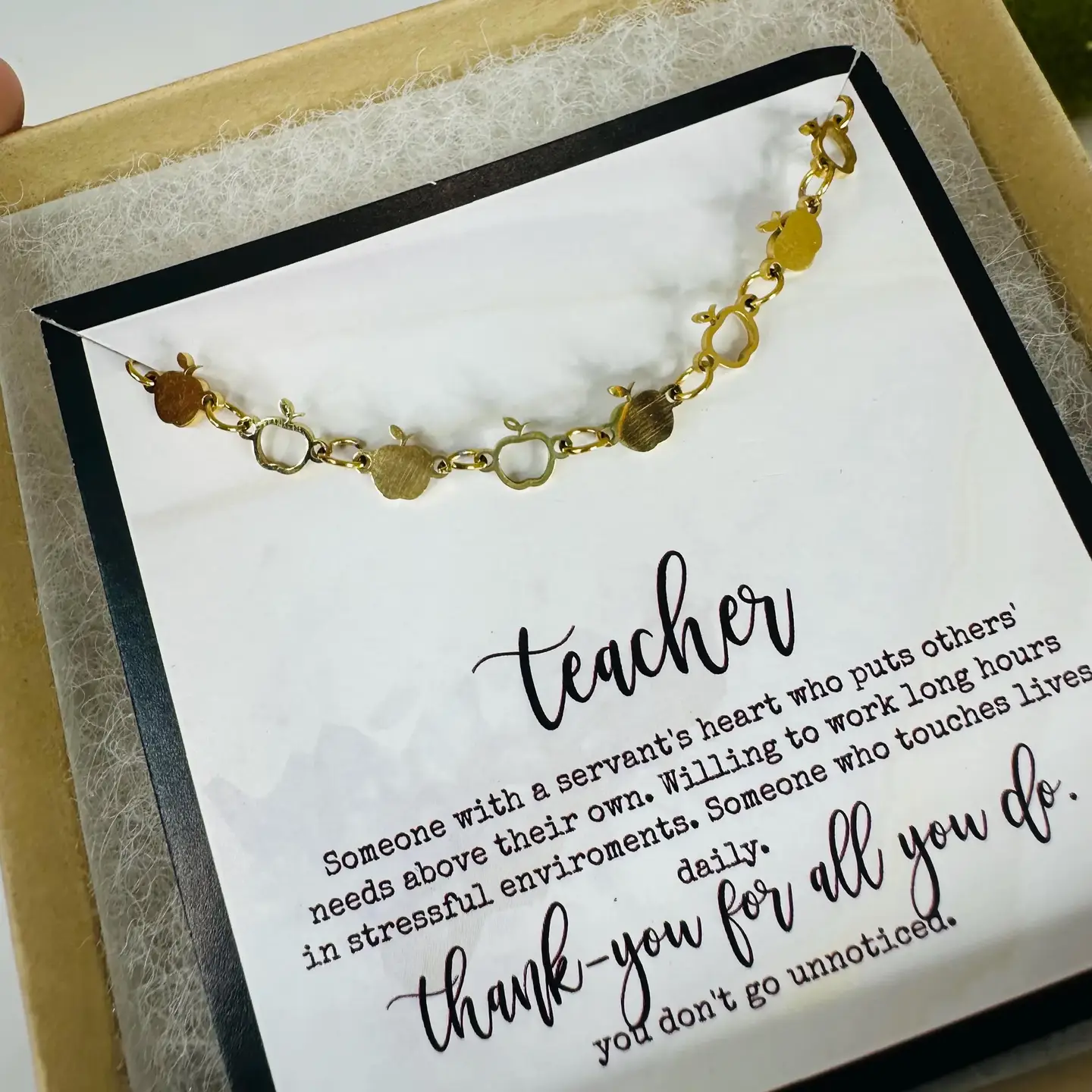 So. Darn. Cute! We're talking about our teacher bracelet, which is features apple links. Comes with gift box.