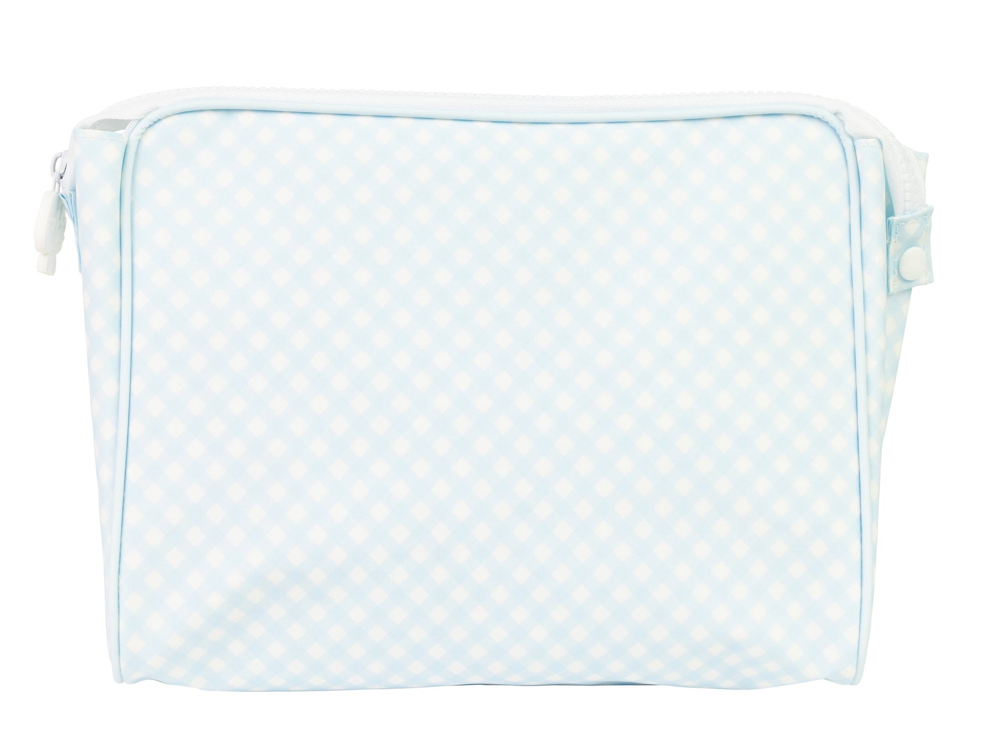 The Go Bag is just that - a bag for your things on the go! Diapers/wipes, makeup, toys, sunscreens, pacifiers, all the things organized to grab and go.